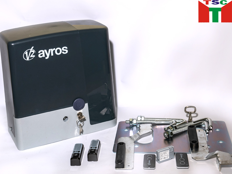 Cổng trượt tự động AYROS được nhập khẩu chính hãng đồng bộ hãng V2-Italia. Loại motor cổng trượt phù hợp cho nhiều loại cổng có trọng lượng từ 600kg – 1000kg. Do vậy, Motor tự động Ayros được lắp đặt phổ biến từ dân dụng đến khu công nghiệp. Bộ thiết bị với hệ thống vận hành thông minh mang đến sự an toàn và tiện nghi cho khách hàng.